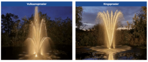 De drijvende fonteinset AT 30 F en AT 35 F zijn krachtige fonteinen voor middelgrote vijvers