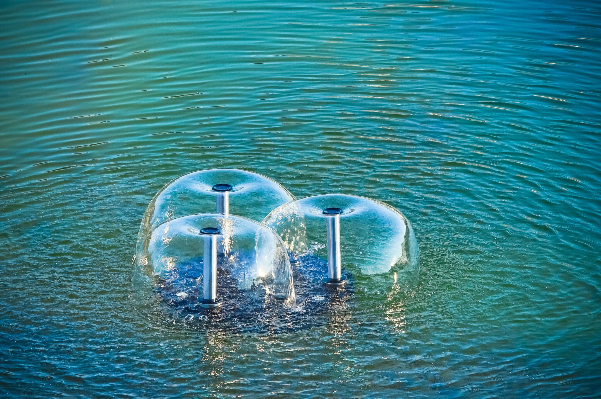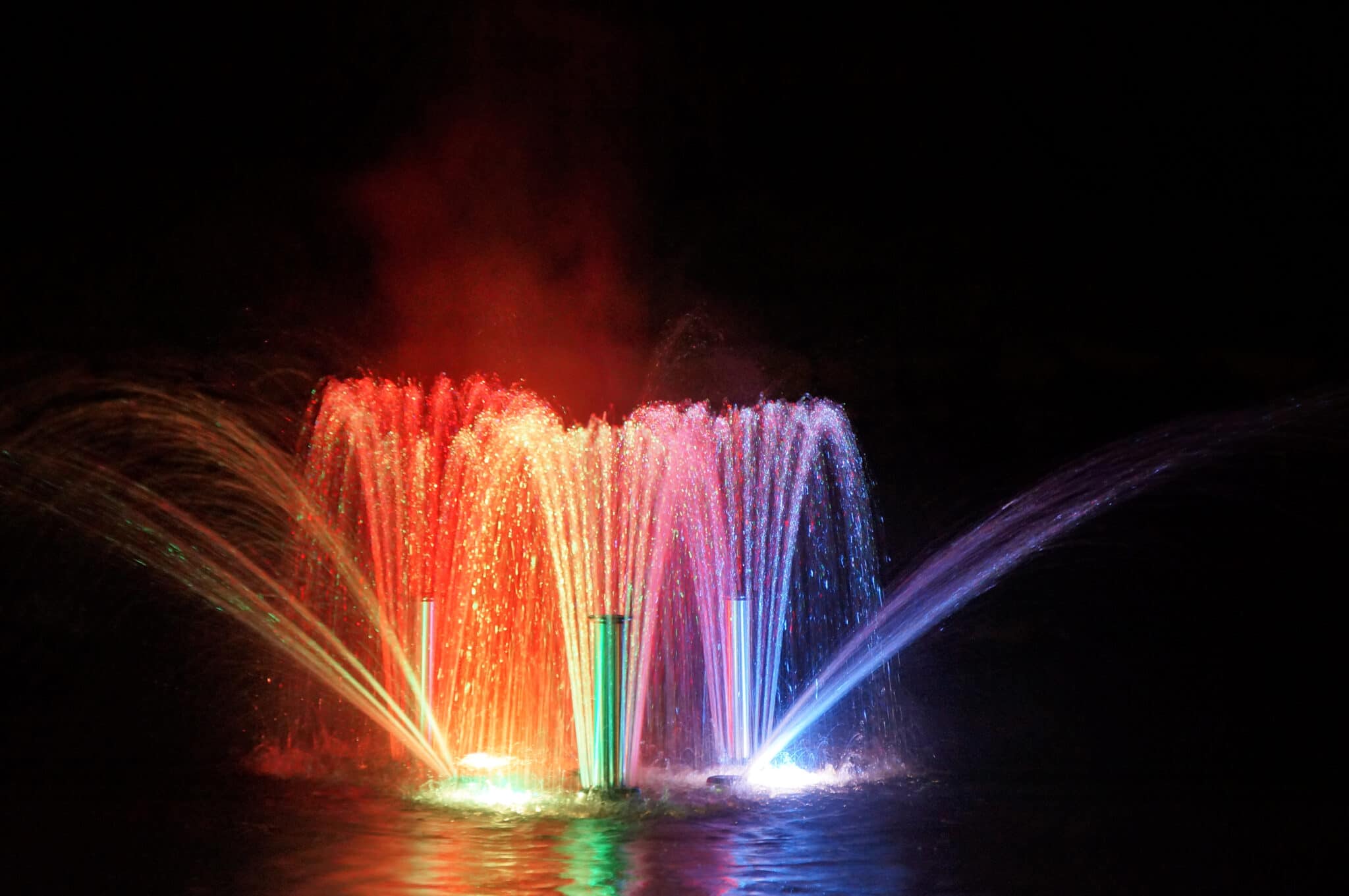 Telkens wisselende fonteinbeelden zorgen voor ’n prachtig waterdecor