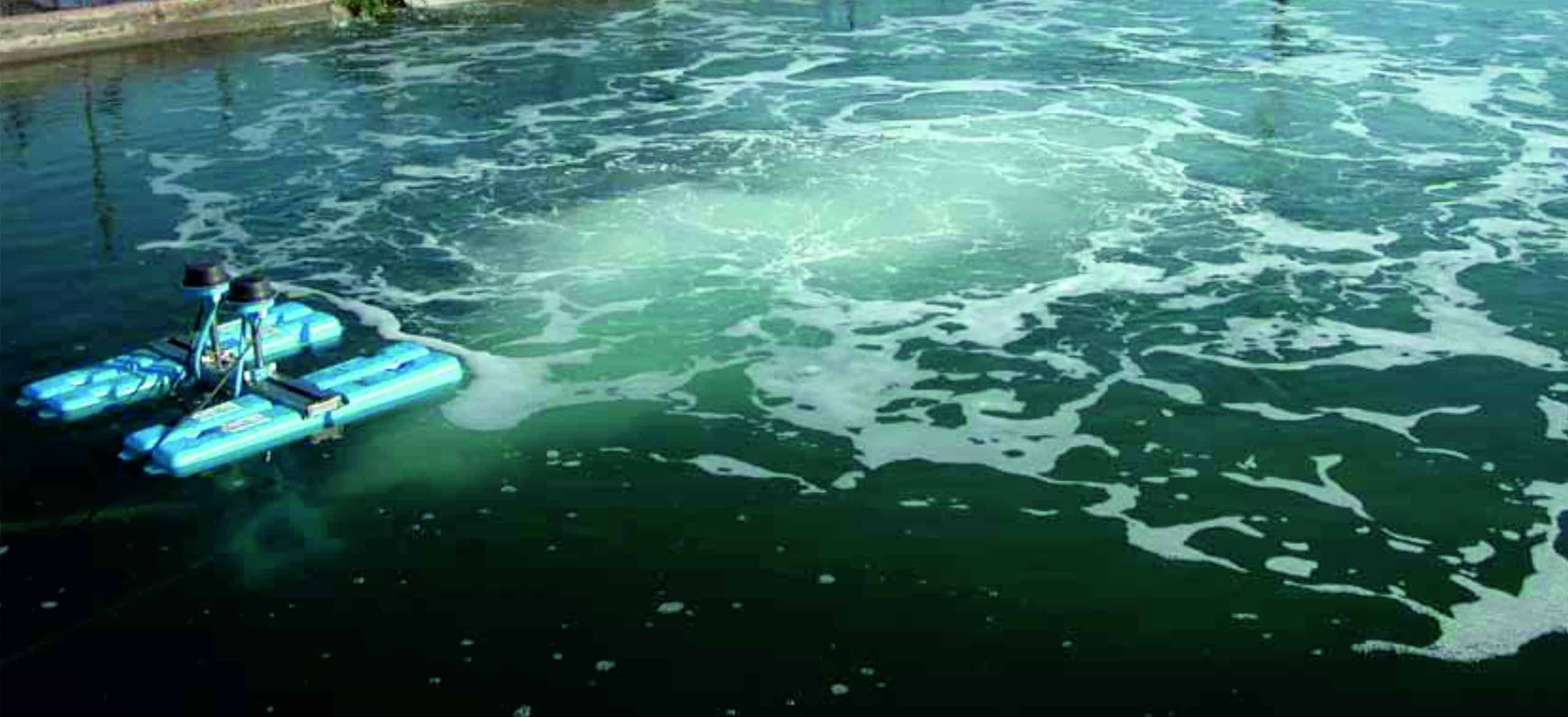 Voor het bestrijden van blauwalgen is echter ook voldoende stroming in het water van groot belang, dat is nodig om de warme waterlagen met de koudere lagen te mixen en de afbraak van vuilophopingen op de bodem te stimuleren.