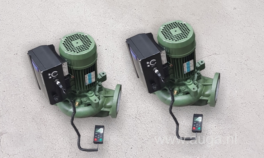 AUGA selecteerde z.g. “IN-LINE” droog opgestelde industriële pompen; de zuig- en persaansluiting staan in lijn met de zuig- en persleiding, erg gemakkelijk in te bouwen en plaatsbesparend.