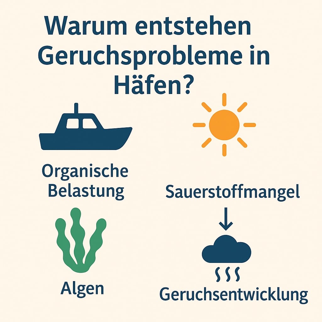 Problem: Übermäßige Algenblüte und stinkendes Wasser im Hafen.