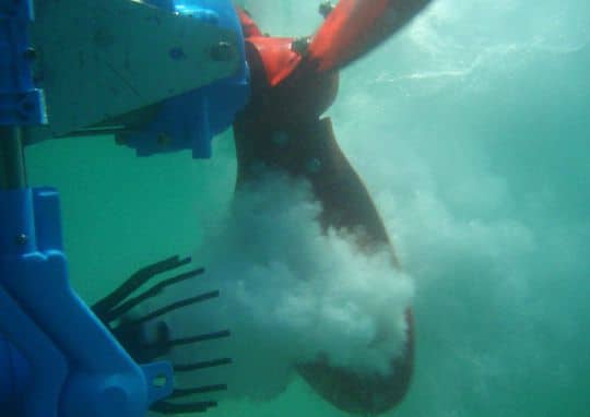 Het is een compact drijvend systeem die je wel goed moet verankeren, want er komt een flinke stuwingskracht uit de grote propeller. De dikke vuilkorst verdwijnt in no-time, we vonden dat best wel opmerkelijk.