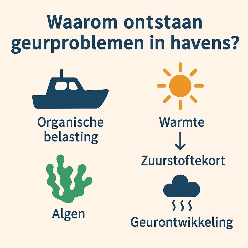 Door intensieve recreatievaart en watersporters ontstaat er echter een grote organische belasting op het havenwater. Door gebrek aan stroming in de omsloten haven stapelde organische vervuiling zich op in een hoek van de haven, met als gevolg overmatige algengroei en stinkend water, de havengasten werden daar niet vrolijk van.
