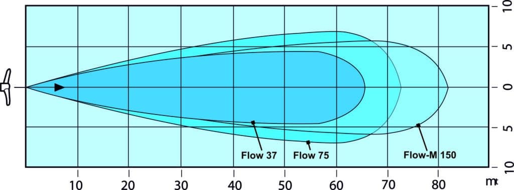 Flow Propellermixers zijn praktisch verstoppingsvrij, de korf dient enkel ter bescherming tegen instromende takken en levende have. Met geringe motorvermogen wordt een groot stromingsbereik gerealiseerd.