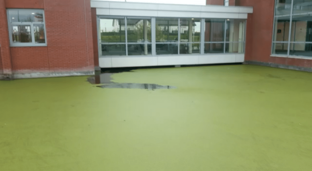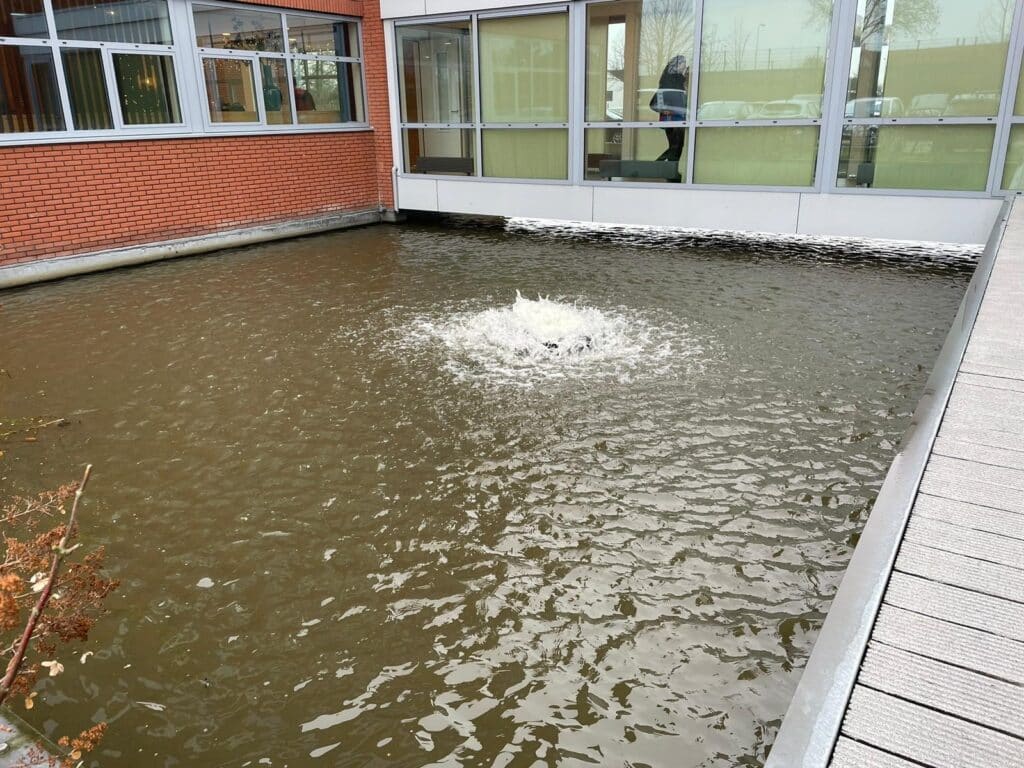 Elk jaar weer wordt de waterpartij bij het hoofdkantoor van Gro-Up totaal afgedekt met een dikke laag kroos. Dat ziet er niet alleen onooglijk uit, ook de werking van de aanwezige fonteinen wordt ernstig verstoord én de waterkwaliteit lijdt eronder. Daar wilde Gro-Up verbetering in brengen.