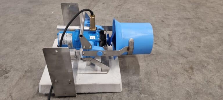 De FLOW mixers zijn op een betonvoet geplaatst voor stabiele opstelling, met een op maat gemaakt frame voor de ondiepe vijver. De stromingsgeleider aan de uitstroomzijde genereert een rechte en rustige waterstroom.